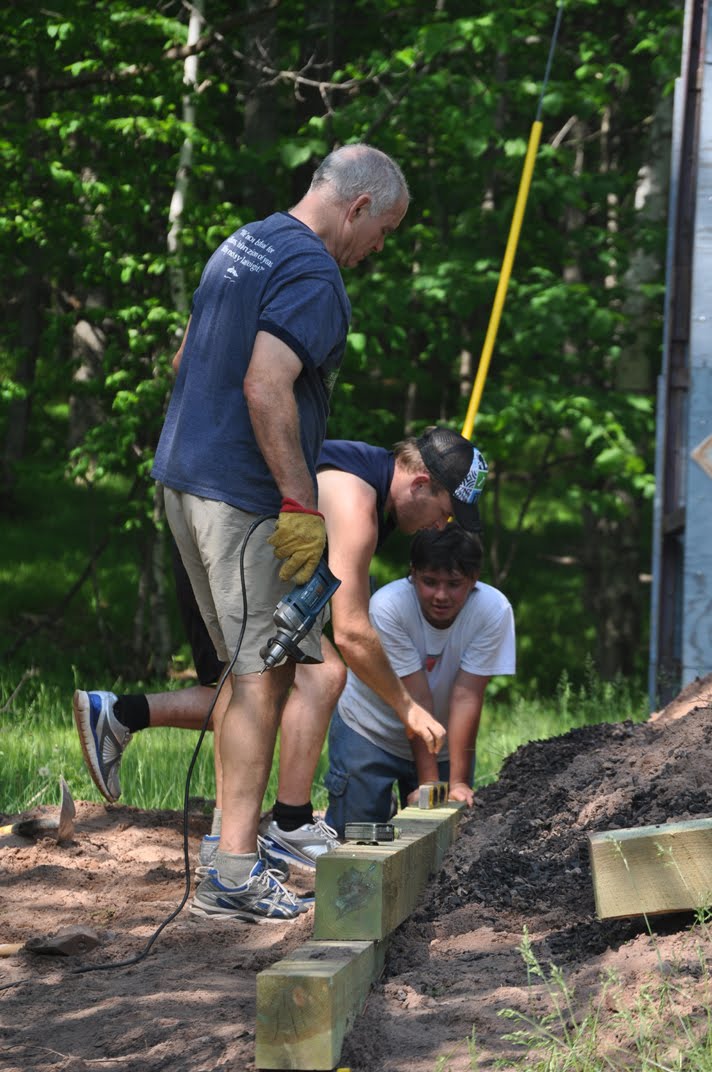 “What a guy could do…” That’s one of the camp phrases made popular by our head caretaker Tom. Today Leb decided to get down and dirty and head up a crew to build new retaining walls around our climbing wall.