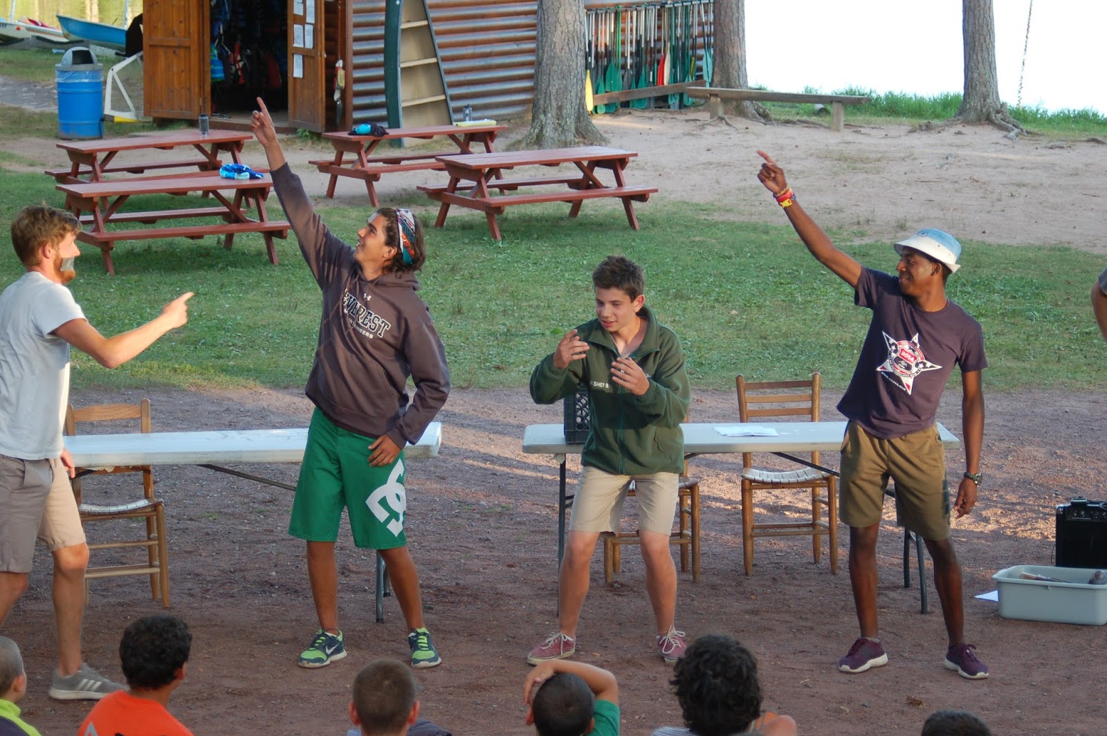 Our day was actually started early as cabins S1 and S2 headed off on their hiking trip on the Superior Trail in Minnesota. Our S4 cabin also departed on the Brule River. We also had a great 4th period slate of challenge games. For fourth period challenges, we let one guy from each cabin come up to the microphone during announcements and challenge the other cabin to a sport or activity. It is a always a funny time at camp, and it helps ensure that no camper leaves here with a fear of public speaking. We ended the day with our staff introduction show, where Joe and Max conducted a Jimmy Fallon-esque talk show to show of our staff and their talents to the boys.