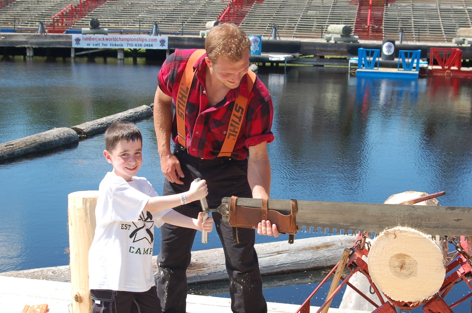 Each village also has a village cruiser day. The first week was the Junior Village Cruiser Day and our youngest guys spent the day at the water park, mini-golfing, and then they paid homage to the Northwoods culture by attending a Lumberjack show. The boys learned about the logging history of the region and also were entertained by yelling “Yo-Ho” to cheer on their favorite Lumberjack. Each camper was able to take a whirl with the big saw and became an official Junior Lumberjack. This week our Senior Village campers headed to Wild Mountain water park and enjoyed the nice weather.